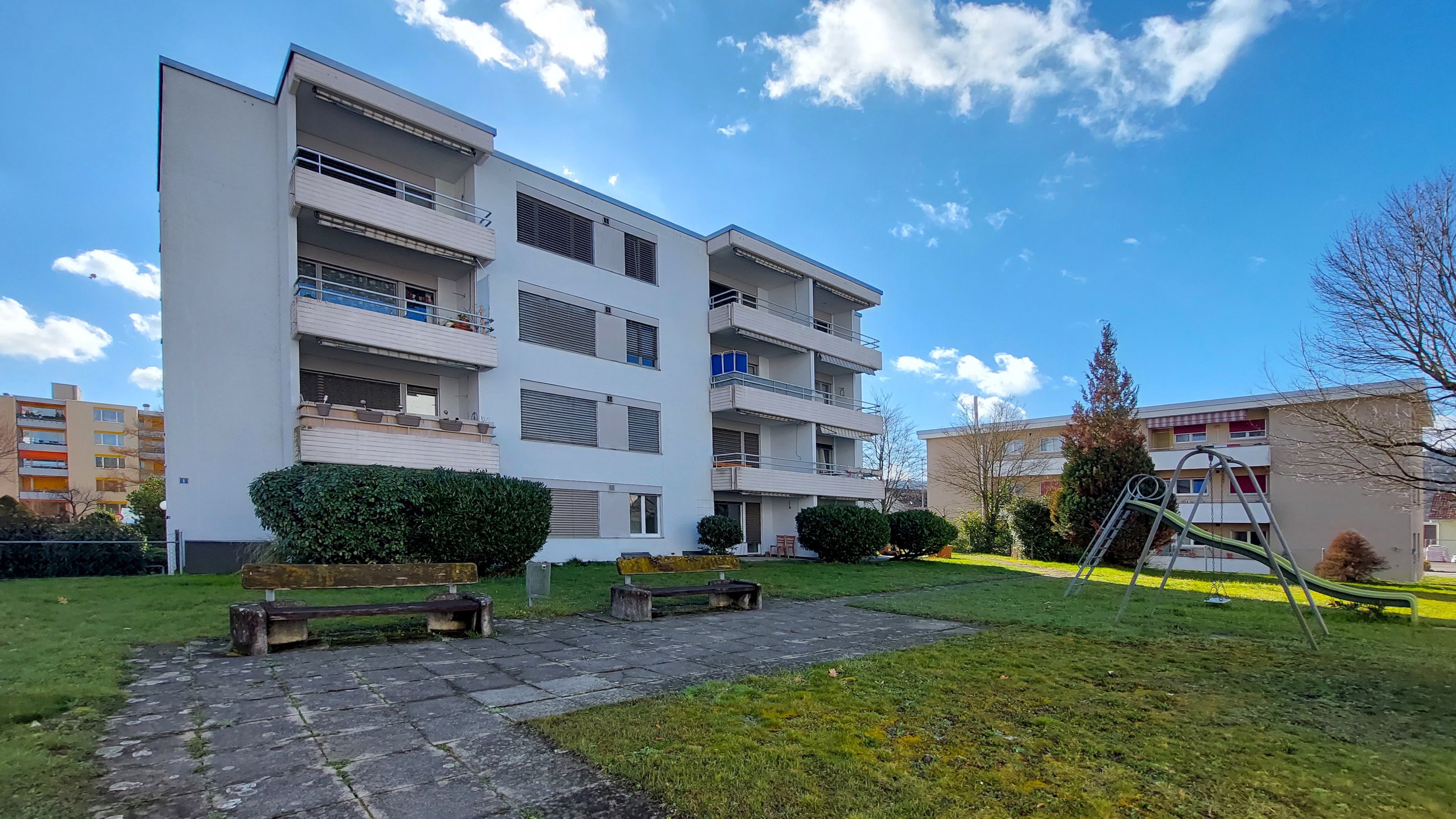 Die Wohnungen (3.5-, 4.5- und 5.5-Zimmer) werden derzeit umfassend saniert und bieten lichtdurchflutete Räume, hochwertige Materialien wie Eichenböden, neue Küchen und Nasszellen sowie zahlreiche Annehmlichkeiten wie eigene Waschmaschinen/Tumbler, Einbauschränke und moderne Ausstattung.